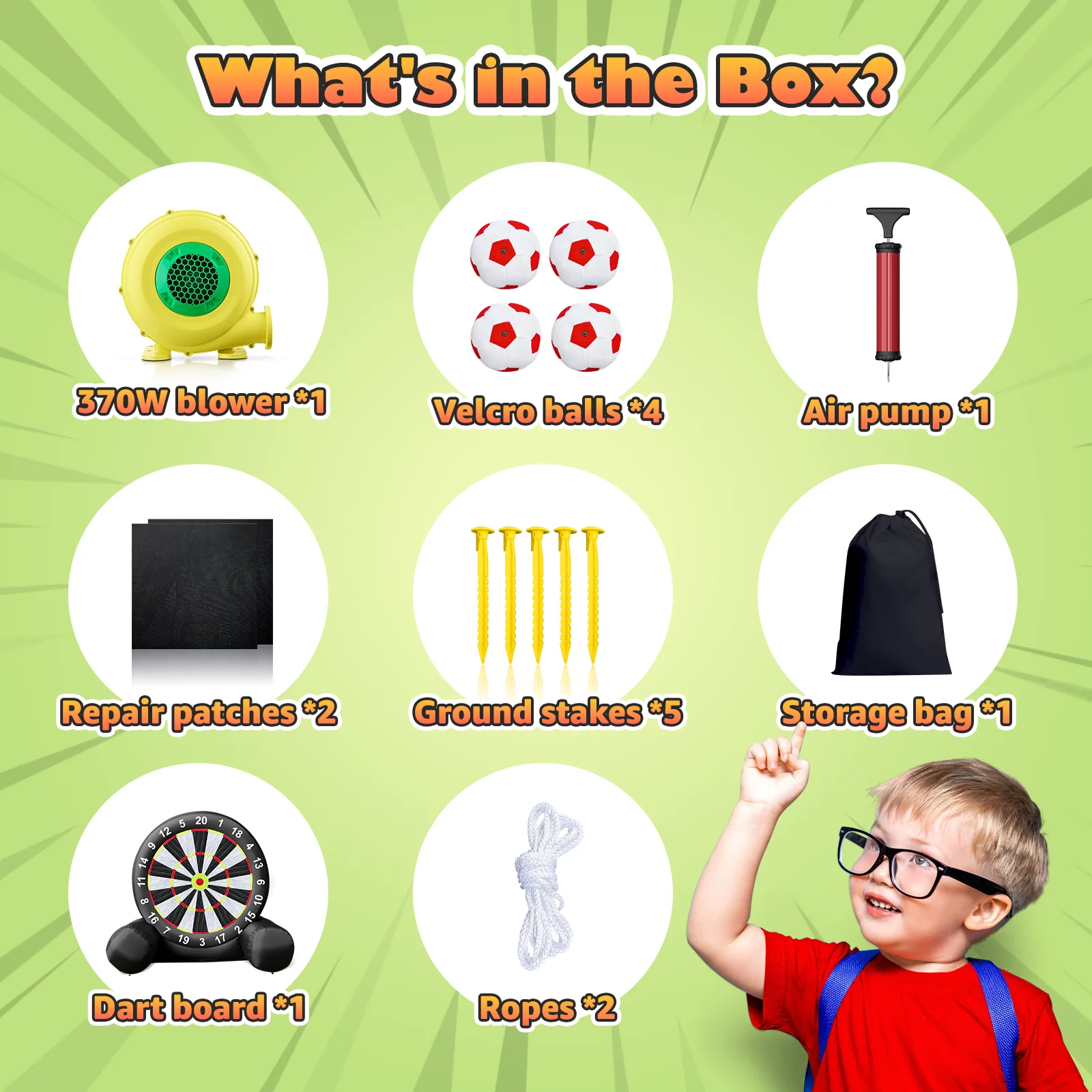 ⚽️ Quick Setup, Effortless Thrills! 💪 No more complicated setups! Just connect the blower, inflate, and zip the vent. You’re ready to play in minutes. With 8 inflatable kick darts soccer balls, the fun is endless. Simply fold, pack, and take it anywhere for instant entertainment.