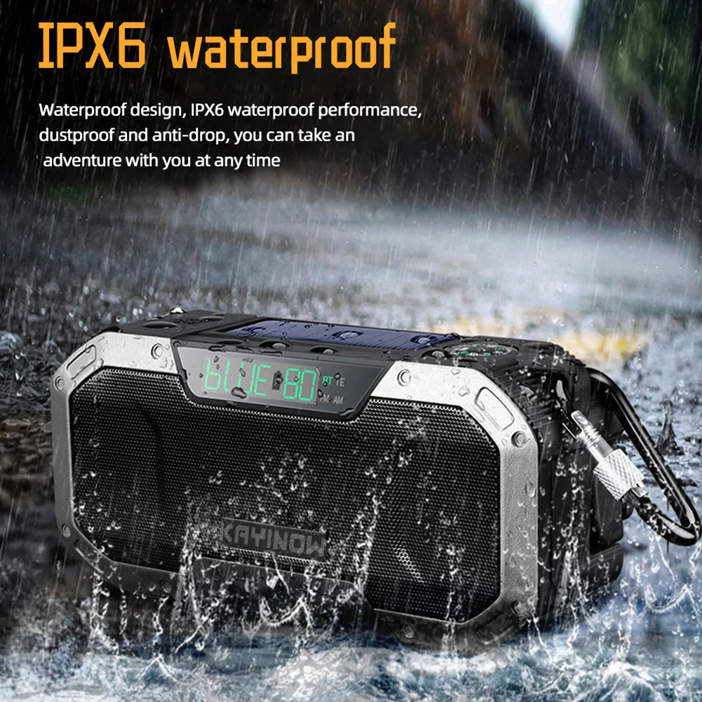3.Comprehensive Emergency Features: With a 10000mAh battery, this survival radio supports solar charging, hand generator charging, and dry battery use. It includes SOS alert, flashlight/reading light, and IPX6 waterproofing, making it ideal for home or outdoor adventures.