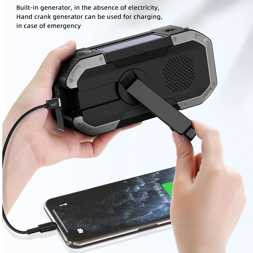 10000mAh Outdoor Solar Radio with Speaker Solar/Hand Crank Charging W/ Flashlight SOS Alarm Headphone Jack for Outdoor Camping