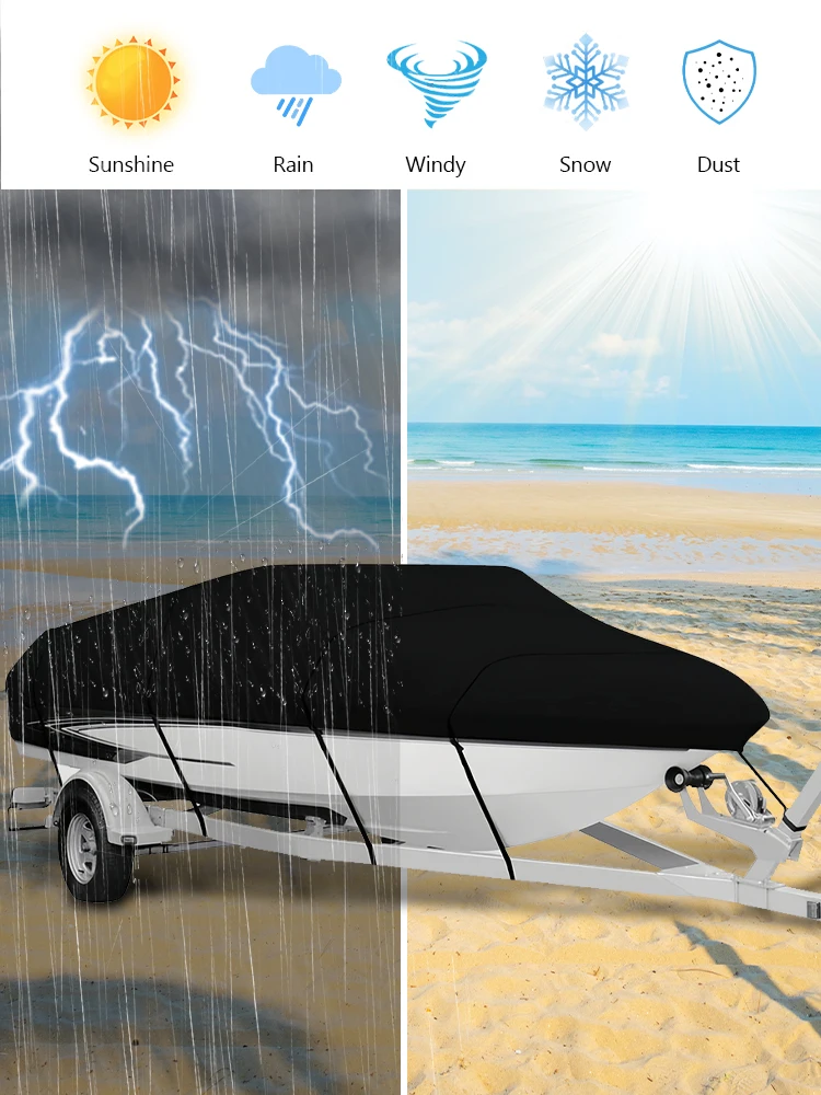 14-16FT Boat Cover 210D Oxford Cloth Fishing Skiing Boat Protector Waterproof Sailing Boats Cover for Yachts Motors Rowing Boats