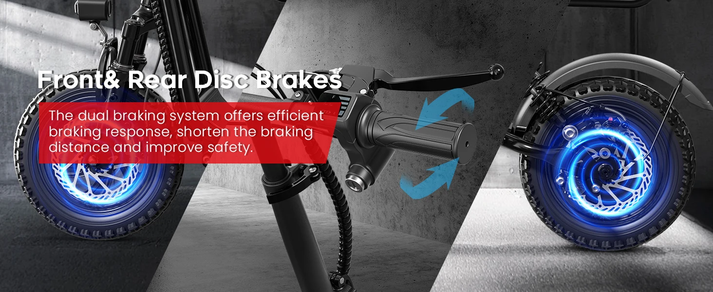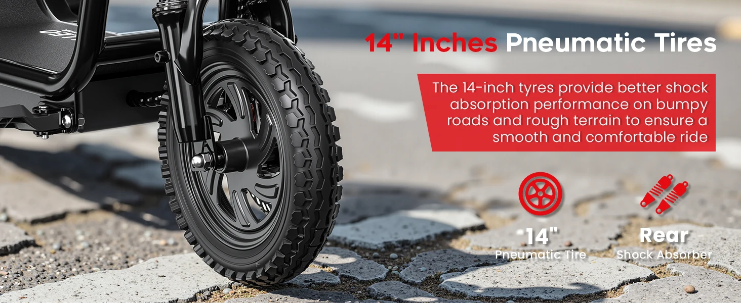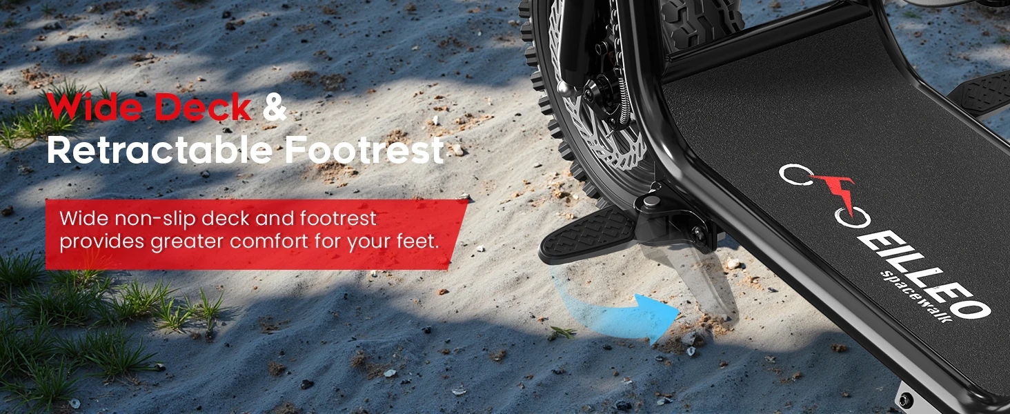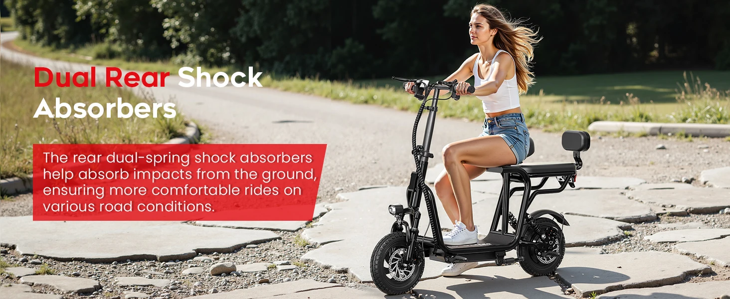 Dual Shock Absorption& Dual Braking System: The electric scooter with seat features a rear spring suspension system to ensure a smooth and comfortable ride on on different terrain. Besides, the front and rear brakes provide powerful stopping power to ensure safe rides. The electric scooter adults is perfect for daily commute and weekend rides.