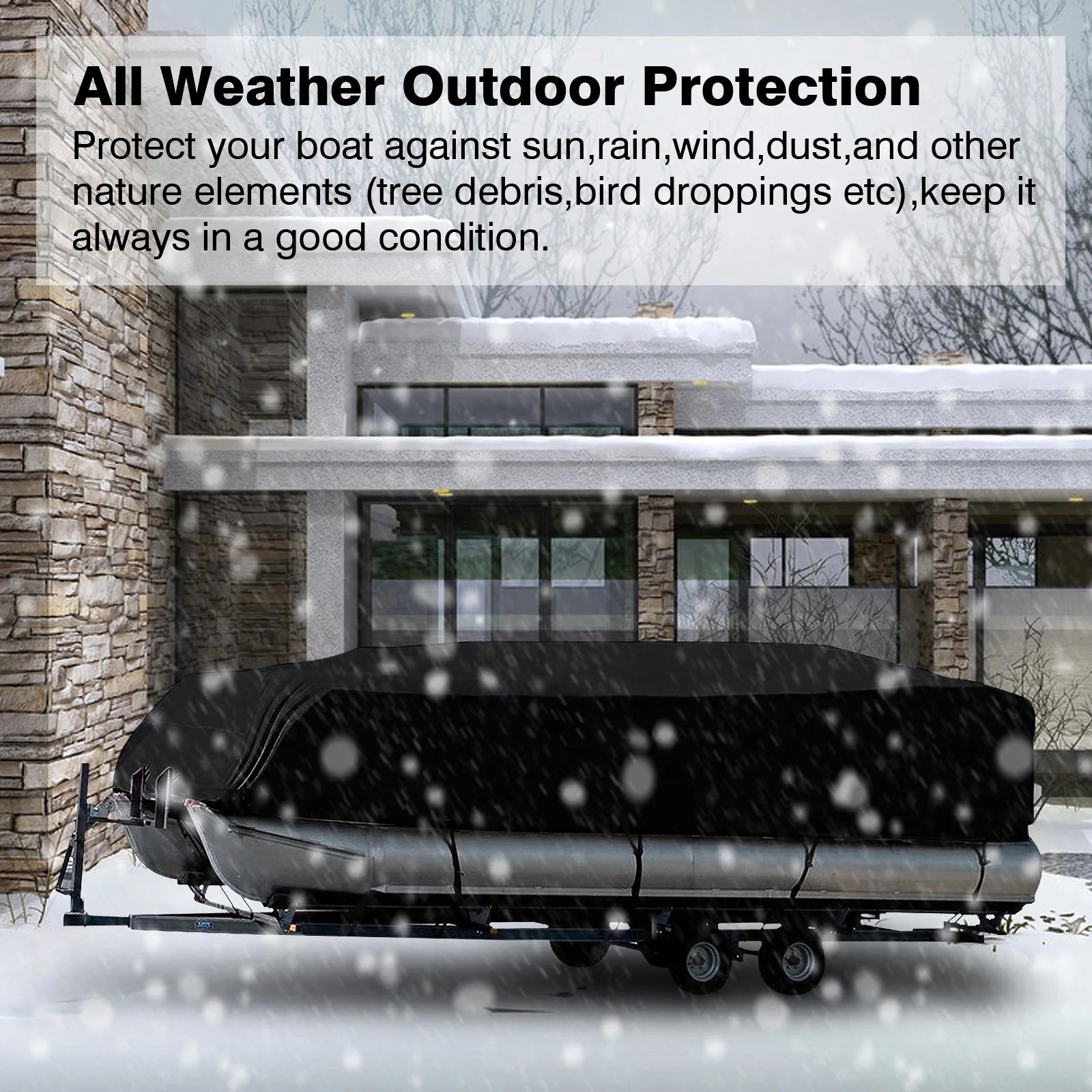 17-24ft For Universals Heavy Boat Covers 210D Waterproof Dustproof Trailerable Pontoon Boat Cover Coat Protect Rain UV PET