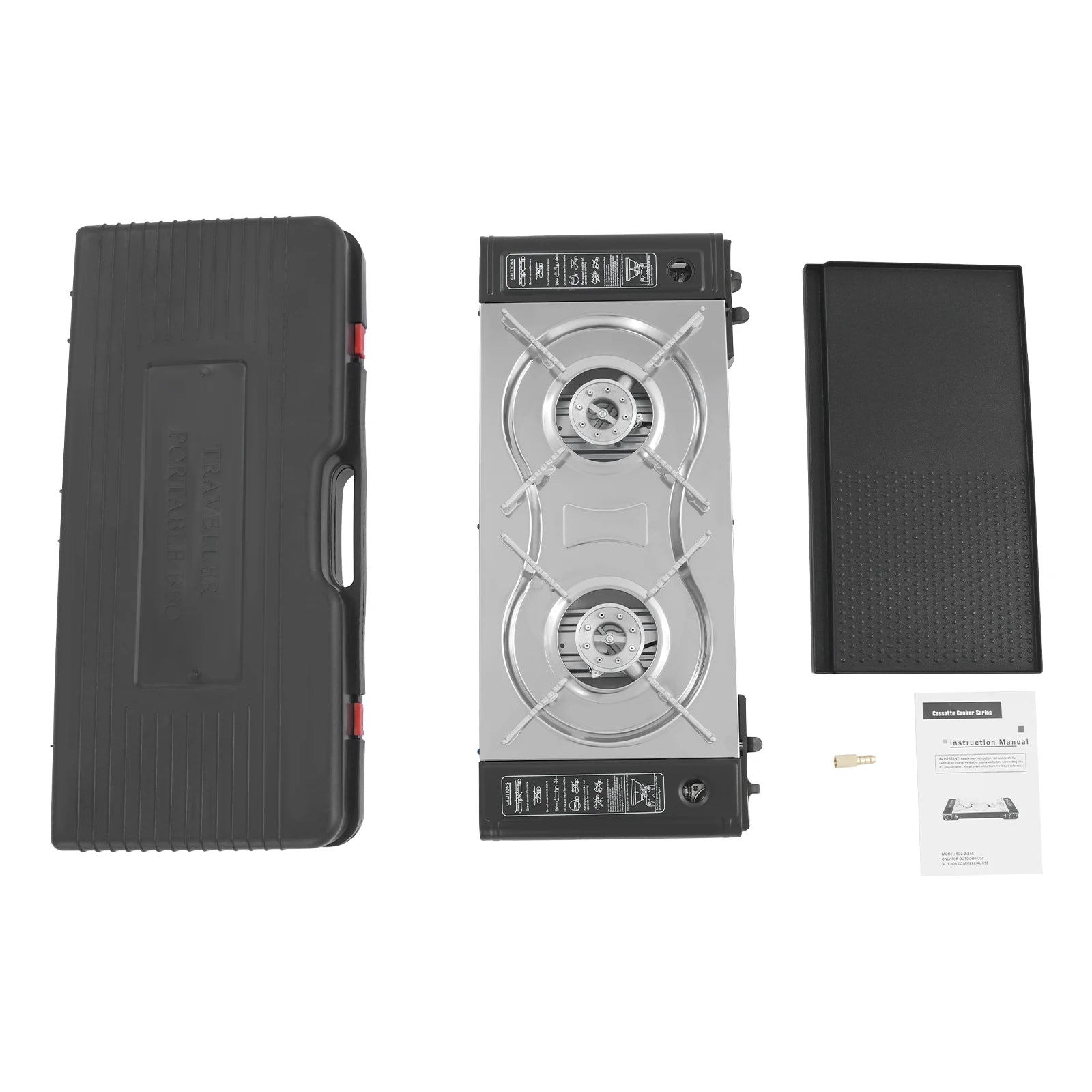 2 Burner Camping Gas Stove With Grill Pan And Regulator