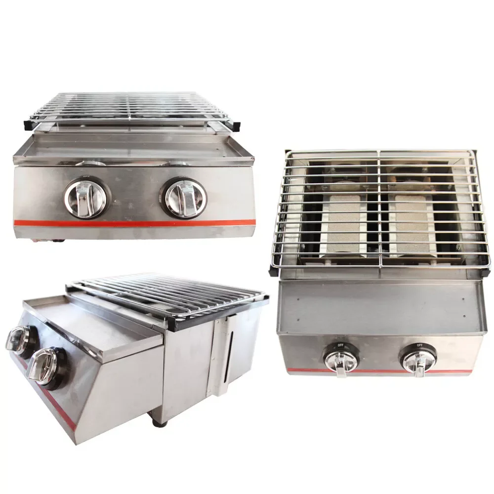 2 Burner Tabletop LPG Grill Stainless Steel Outdoor BBQ Camping Griddle Smokeless Portable Gas Barbeque Grill