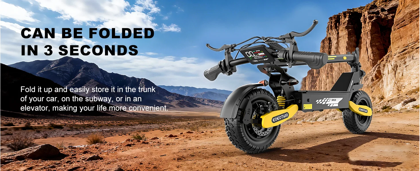 Featuring a powerful motor system, effortlessly reaching speeds over 30 MPH and conquering steep slopes of 25°-35°! All models are equipped with 11-inch off-road-grade vacuum tires and front/rear spring suspension, making sand, mud, and bumpy terrain feel like smooth sailing.The GT06 offers a 40-mile range (48V 23.4Ah version). Whether commuting or exploring the great outdoors, range anxiety is a thing of the past!The GT06 features front and rear disc brakes, ensuring rock-solid braking performance at high speeds.One-step folding structure + compact body, easily fits in the trunk; LED display shows real-time speed and battery level330lbs load capacity, a true powerhouse!
