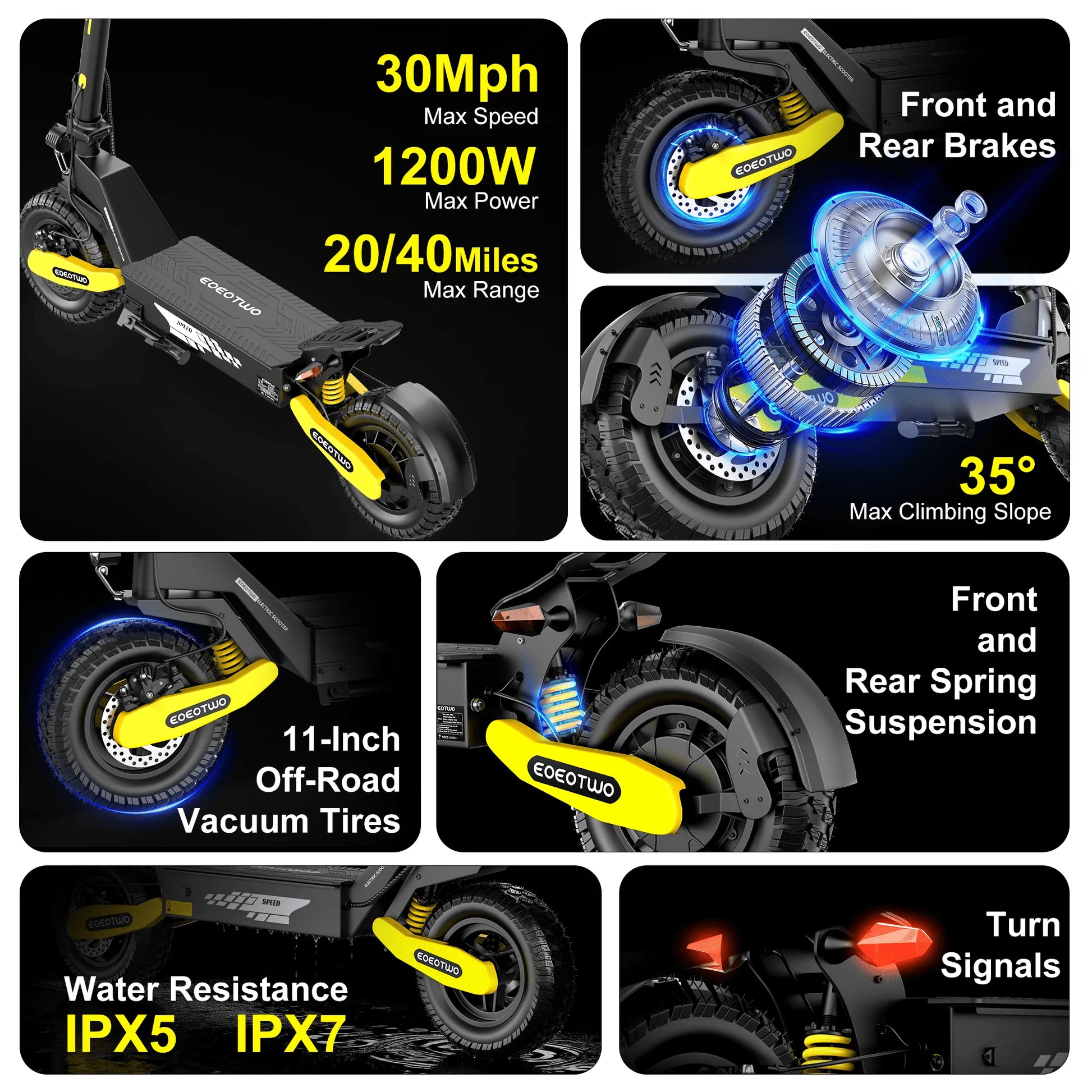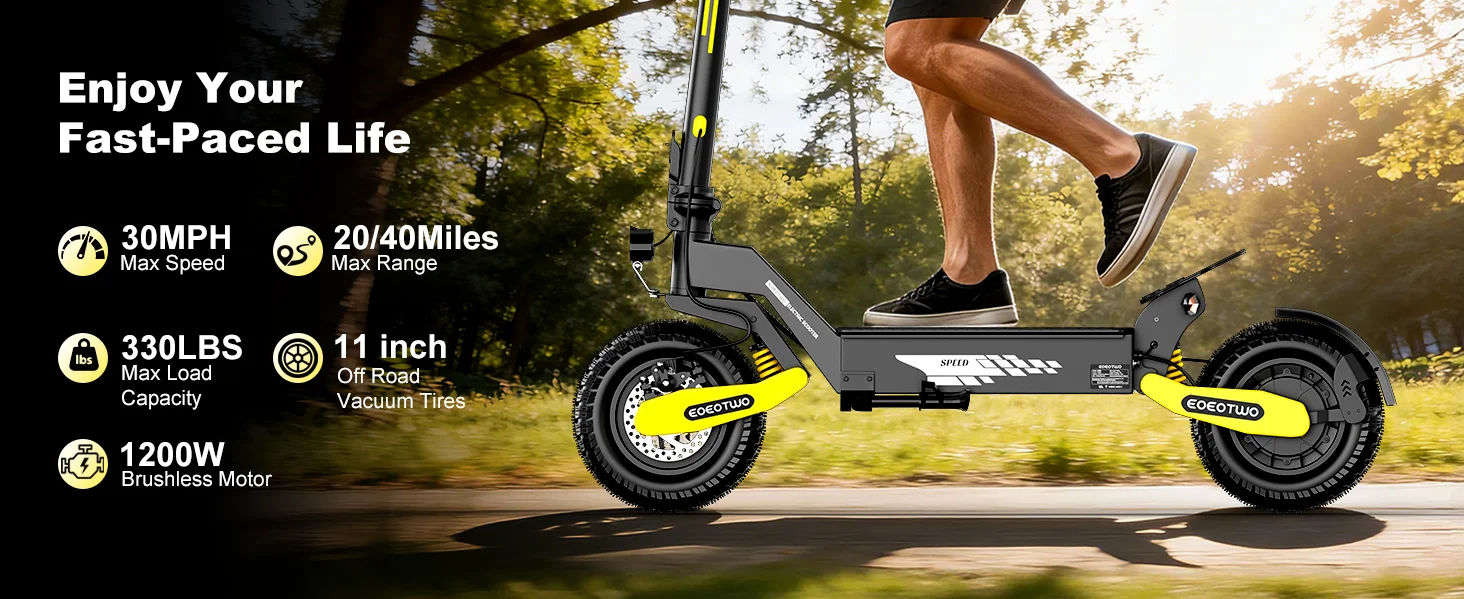 EOEOTWO GT06 Electric Scooter Adults 30MPH,1200W Motor E-Scooter,11'' Off-Road Tire Scooter with Dual Suspension & Side Light