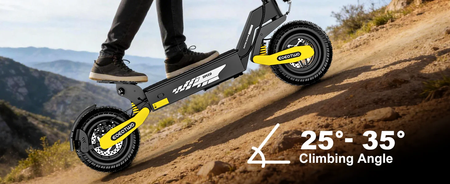 1200W single-drive motor with 25-35° climbing angle --- Delivers powerful off-road traction and exceptional climbing capability, effortlessly tackling rugged trails and steep inclines to meet professional-grade off-road riding demands.