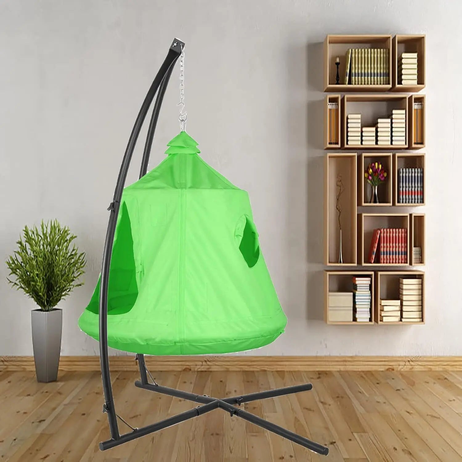Hammock Chair Stand with Swing Chair, Hanging Tree Tent with Steel Stand Combo, Kids Play House Tree Tent with LED Decoration Lights, Indoor Outdoor Use