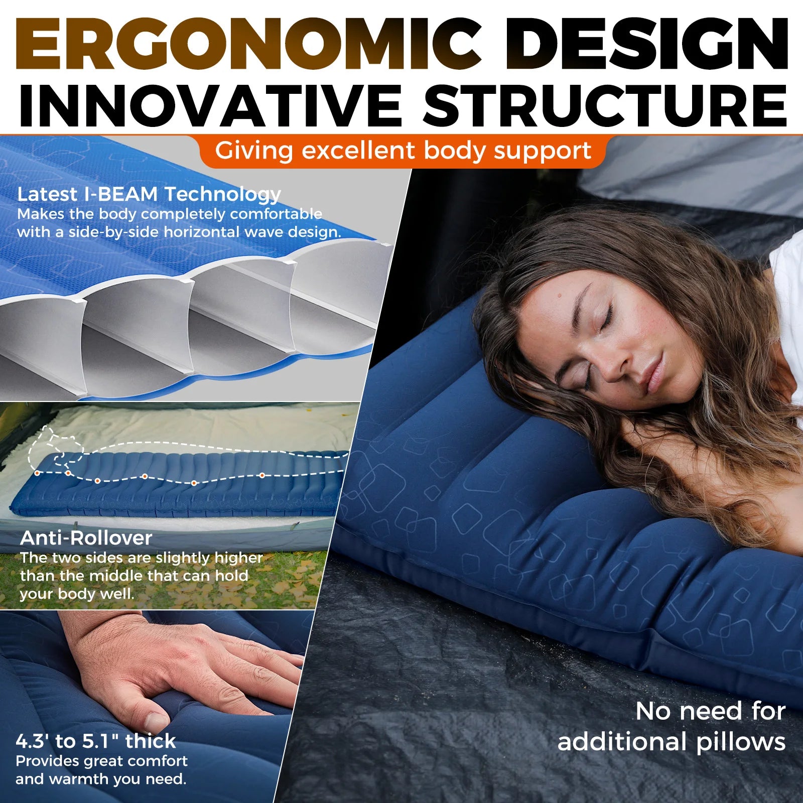 - Inflatable comfort surface cushions uneven ground and rocks, so you enjoy a fuller night's rest after a long day outdoors.