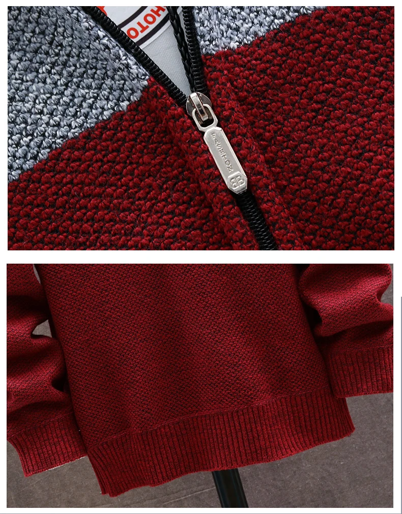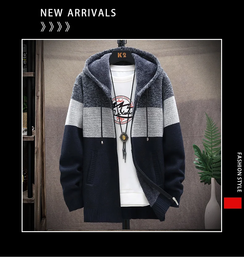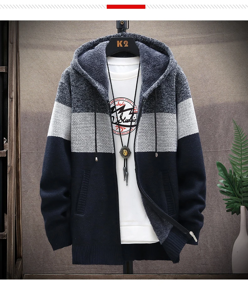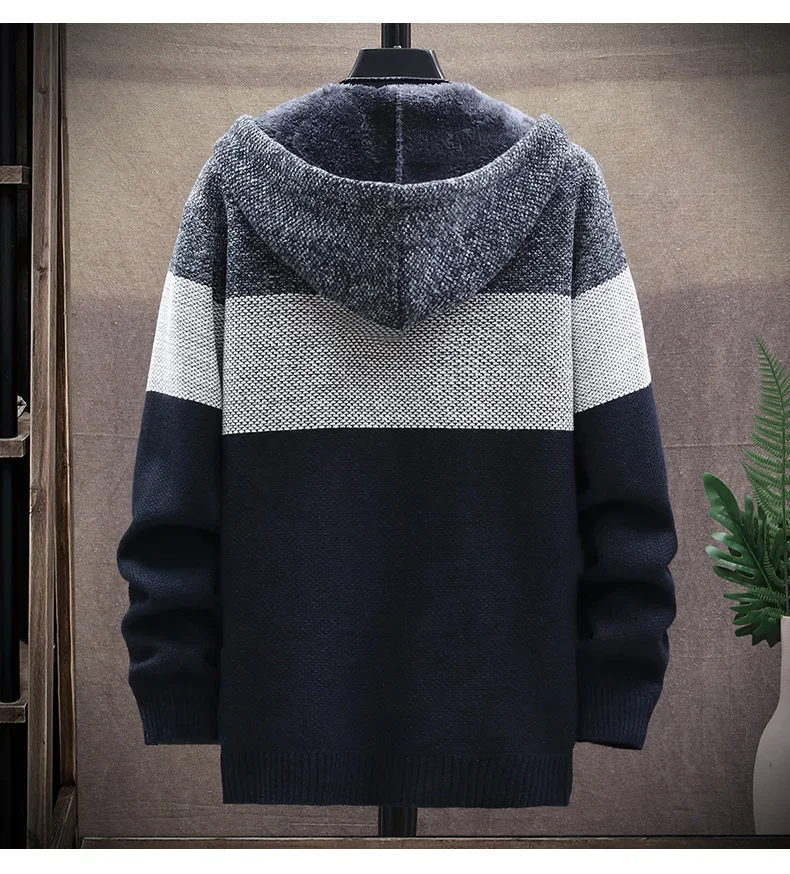 Men's Knit Sweater Fleece Coat Striped Jackets Fashion Hoodies Winter Autumn Thick Warm Windbreaker Pullovers Male Clothing
