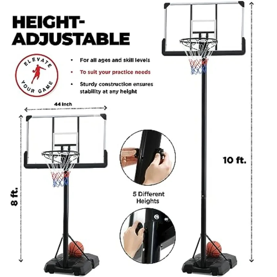 Portable Basketball Hoop 10 ft Adjustable - 44in Shatterproof Backboard - Basketball Goal System 8-10 ft Adjustable Basketball