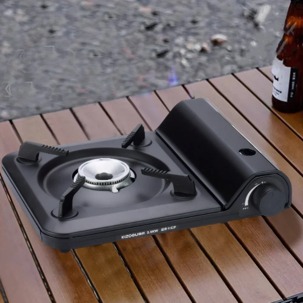 Your reliable, compact portable gas stove with automatic ignition is ready for camping, backpacking, or emergency cooking.