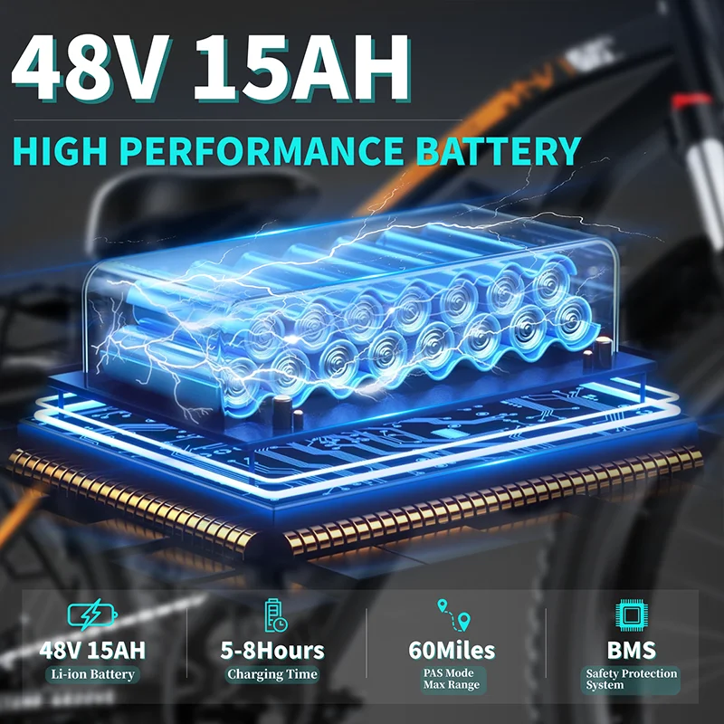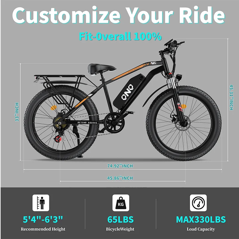 QNQ Q26 Electric Bicycle 1500W Motor 48V15AH Lithium Battery Electric Bike 26 Inch Fat Tire Snow E-bike