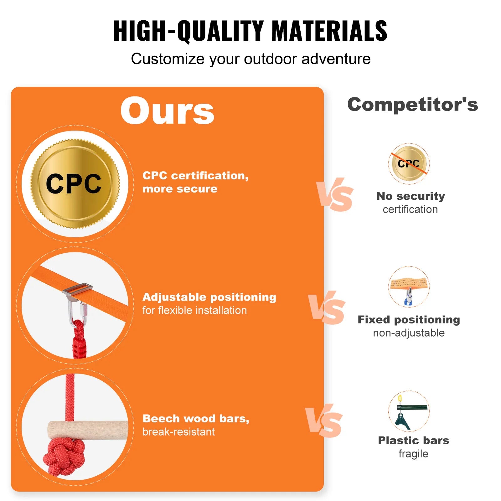 Quick Installation and Disassembly: The outdoor playset equipment can be assembled in just 5 minutes. There's no need for a wide flat area in your yard; just fix it between two trees or poles 20 to 40 feet apart to start customizing your obstacle challenge game! It's an ideal alternative to traditional playgrounds, offering a convenient and flexible backyard challenge game for children of various ages and skill levels.